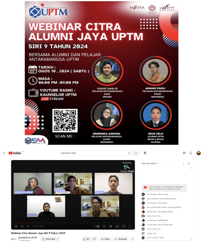New students of Universiti Poly-Tech Malaysia (UPTM) are invited to join the UPTM Alumni Talk Session titled Webinar Citra Alumni Jaya UPTM Series 9, which will be held on 10 August 2024, from 8.00 PM to 9.00 PM. The session will be streamed live via the UPTM Counsellor YouTube Channel.