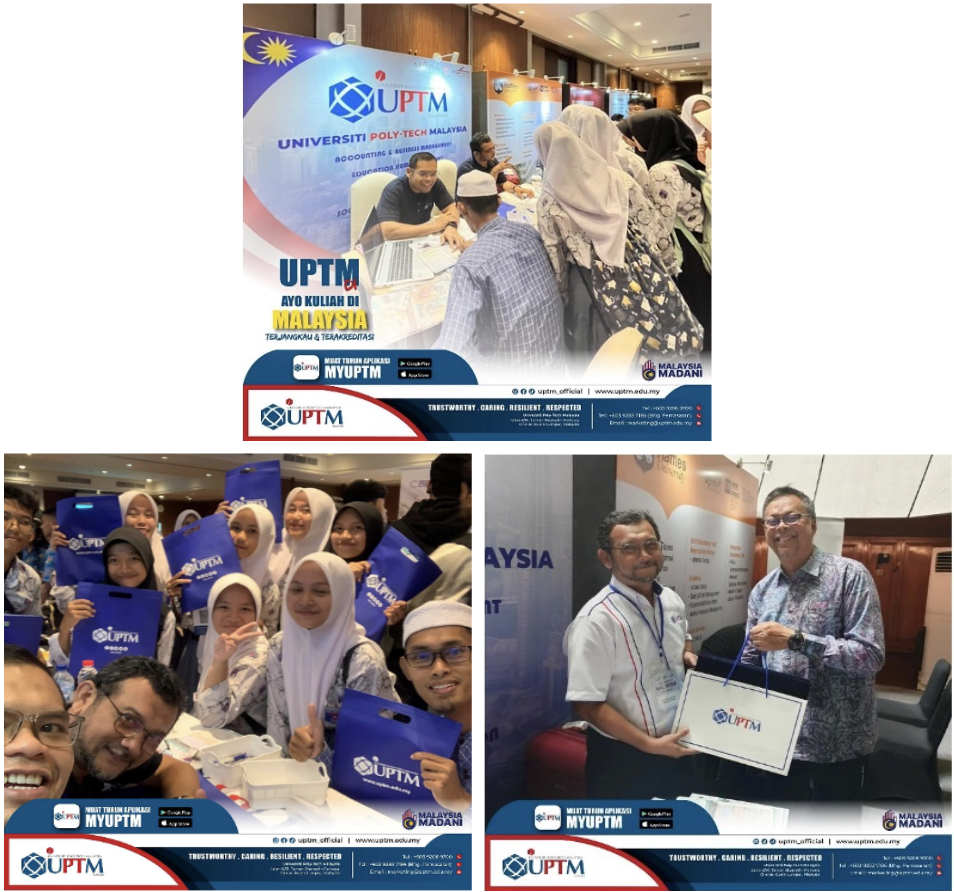 The "Let's Study in Malaysia" Education Fair was held on 15 and 16 May 2024, at the Malaysian Embassy in Jakarta and the Swiss-Bel Hotel in Bogor, Indonesia. Organized by Education Malaysia Global Services (EMGS), the event brought together 19 Malaysian higher education institutions, including Universiti Poly-Tech Malaysia (UPTM). The fair targeted students who had completed Grade 12, as well as diploma and bachelor’s degree holders, to further their studies in Malaysia. The event was officiated by the Malaysian Ambassador to Indonesia, Datuk Syed Md Hasrin Tengku Hussin. This initiative served to strengthen UPTM’s brand visibility and international collaboration while contributing to the growth of its international student community.