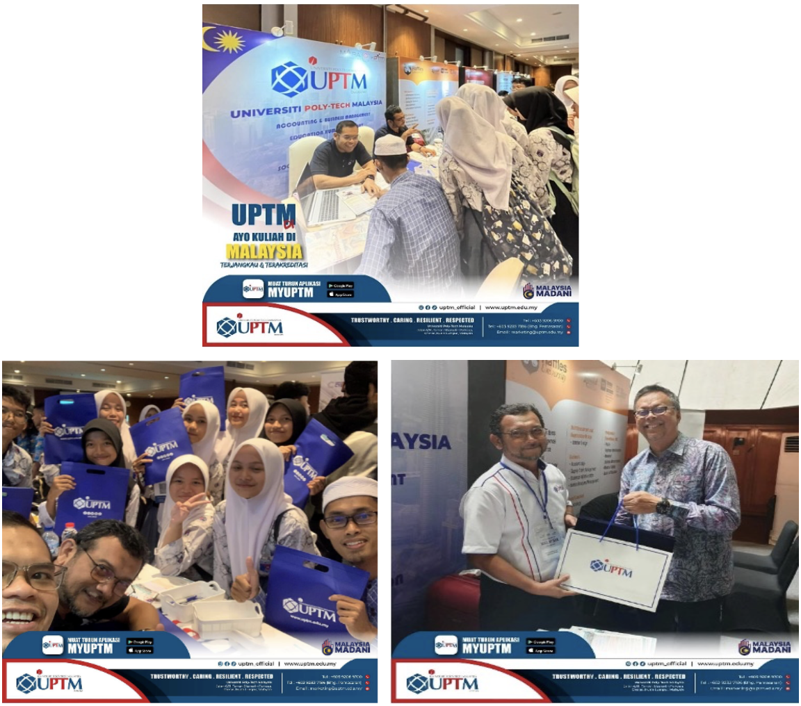 The "Let's Study in Malaysia" Education Fair was held on 15 and 16 May 2024, at the Malaysian Embassy in Jakarta and the Swiss-Bel Hotel in Bogor, Indonesia. Organized by Education Malaysia Global Services (EMGS), the event brought together 19 Malaysian higher education institutions, including Universiti Poly-Tech Malaysia (UPTM). The fair targeted students who had completed Grade 12, as well as diploma and bachelor’s degree holders, to further their studies in Malaysia. The event was officiated by the Malaysian Ambassador to Indonesia, Datuk Syed Md Hasrin Tengku Hussin. This initiative served to strengthen UPTM’s brand visibility and international collaboration while contributing to the growth of its international student community.