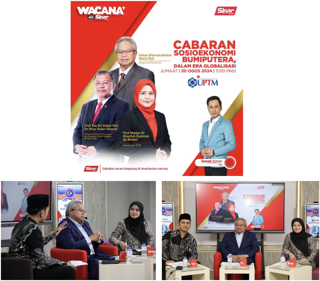 The Wacana Sinar program was broadcast live across all Sinar Harian and UPTM social media platforms. The discussion, titled “Bumiputera Socioeconomic Challenges in the Era of Globalisation”, was led by experienced panellists YB Dato’ Haji Shamsulkahar bin Haji Mohd Deli, Chairman of KPTM Sdn. Bhd. and Associate Professor Dr. Sharifah Syahirah binti Sy Shiekh, Vice-Chancellor of UPTM, with Mr Ismail Adnan appointed as the host.