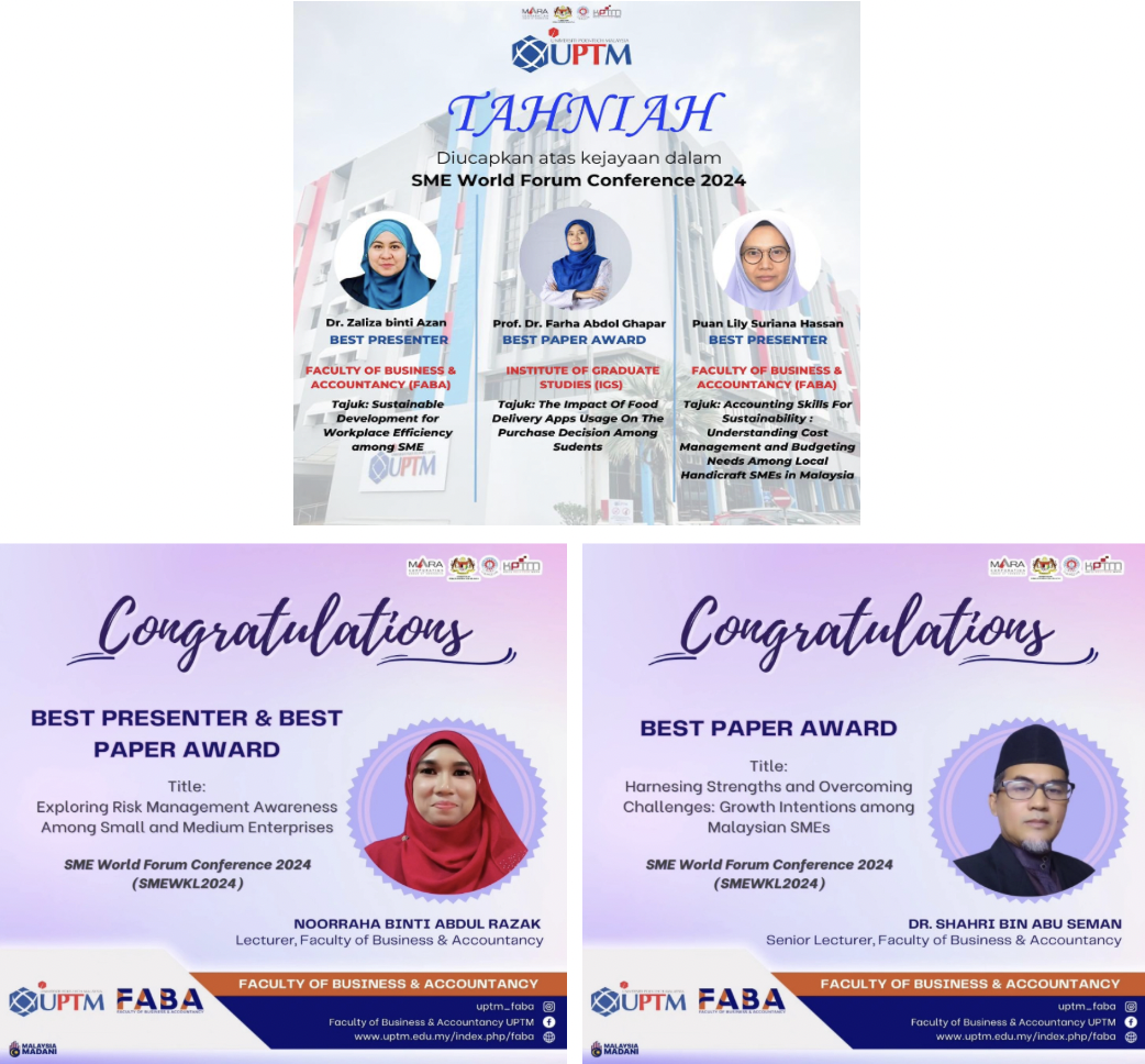 Congratulations to the UPTM lecturers for their outstanding achievements at the SME World Forum Conference 2024 (5 December 2024, Thursday). The award recipients are:
