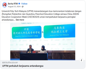 This visit is expected to inspire UPTM to continue fostering international collaborations and expanding its global academic network. The initiative aligns with UPTM’s mission to provide a world-class educational experience for its students while enhancing the university’s recognition on the international stage.