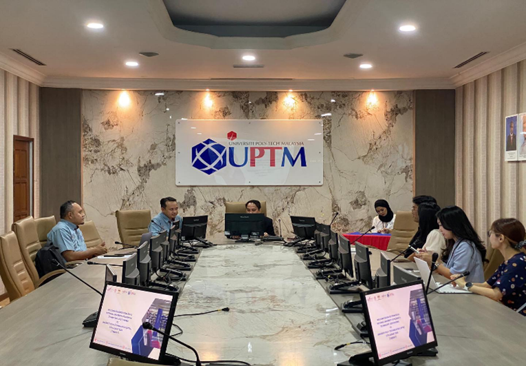 The discussion was led by Assoc. Prof. Dr. Sharifah Syahirah binti Sy Sheikh, Vice-Chancellor of UPTM. Also contributing ideas and insights to strengthen this collaboration were Prof. Ts. Dr. Zahrah binti Yahya, Deputy Vice-Chancellor (Academic & Internationalization); Dr. Fatimah Bibi binti Hamzah, Head of the Chancellery Office; Dr. Sangeeth Ramalingam, Dean of the Faculty of Education, Social Sciences & Humanities; and Ms. Hartini binti Mohd Rosli, Senior Assistant Director of the Department of Continuing Education, KPTM Headquarters.