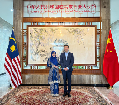 A delegation from Universiti Poly-Tech Malaysia (UPTM), led by Associate Professor Dr. Sharifah Syahirah binti Sy Shiekh, Vice Chancellor of UPTM, paid a courtesy visit to the Embassy of China in Malaysia on 25 September 2024 (Wednesday). The delegation was warmly received by Mr. Zhao Changtao, Counsellor of the Embassy of China in Malaysia, and Mr. Tang Jing, Third Secretary of the Embassy.