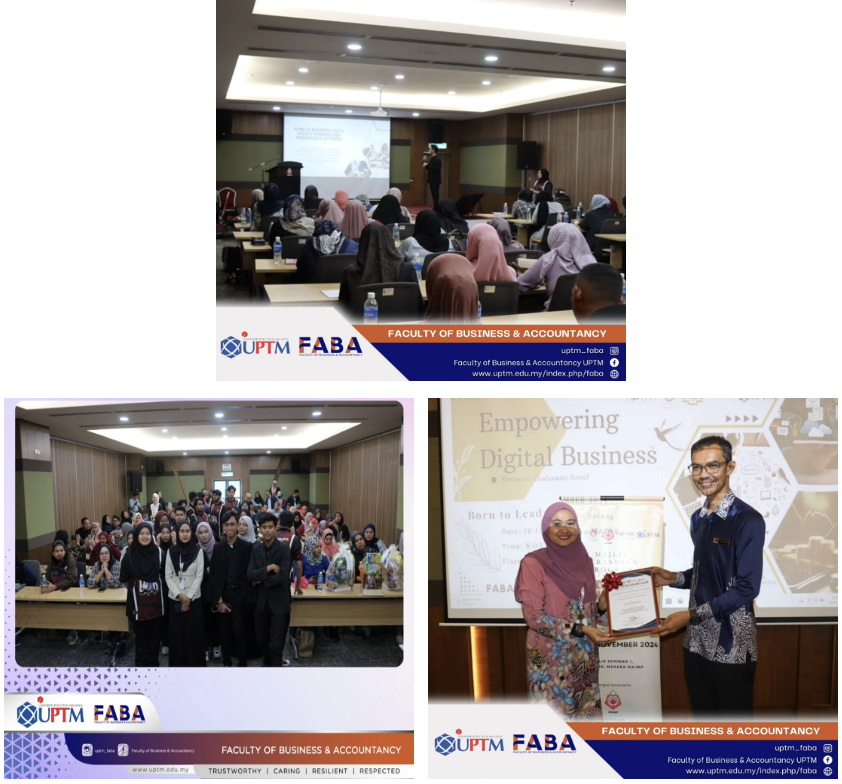 On 9 & 10 November 2024, our 𝗕𝗮𝗰𝗵𝗲𝗹𝗼𝗿 𝗼𝗳 𝗕𝘂𝘀𝗶𝗻𝗲𝘀𝘀 𝗔𝗱𝗺𝗶𝗻𝗶𝘀𝘁𝗿𝗮𝘁𝗶𝗼𝗻 (𝗛𝗼𝗻𝗼𝘂𝗿𝘀) (𝗔𝗕𝟮𝟬𝟮) students organized a SULAM program titled Empowering Digital Business at Geno Hotel, Subang Jaya. Ms. Zaidatulnisha binti Ab Jalil supervised the program, which involved passionate participants from Usahawan Asnaf TERAS-Lembaga Zakat Selangor.
