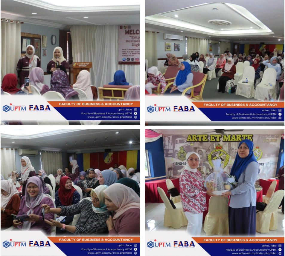 Participated by Badan Kebajikan Keluarga Angkatan Tentera (BAKAT), Pangkalan Udara Subang, the program aimed to provide BAKAT members with opportunities to deepen their knowledge of digital entrepreneurship fundamentals, offering them essential insights and practical approaches to succeed in the digital business landscape. Additionally, the initiative focused on supporting the development of participants' social networks, fostering connections that could benefit both personal and professional growth. Through targeted sessions, the program also enhanced participant's understanding of conducting business through social media platforms, equipping them with the skills to reach and engage a broader audience online.